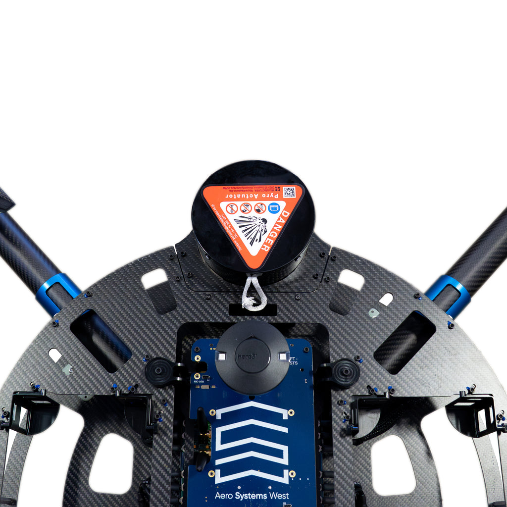 Each PARASAFE® drone parachute canister is integrated with the Parasafe compact Manual Trigger System (MTS), which can be activated manually or linked to autonomous flight control systems. Upon anomaly detection, the system triggers a pyrotechnic actuator that rapidly deploys the parachute for controlled descent, even at low altitudes. By using pyrotechnics rather than springs, PARASAFE® enables larger parachutes and faster deployment across all payload classes: